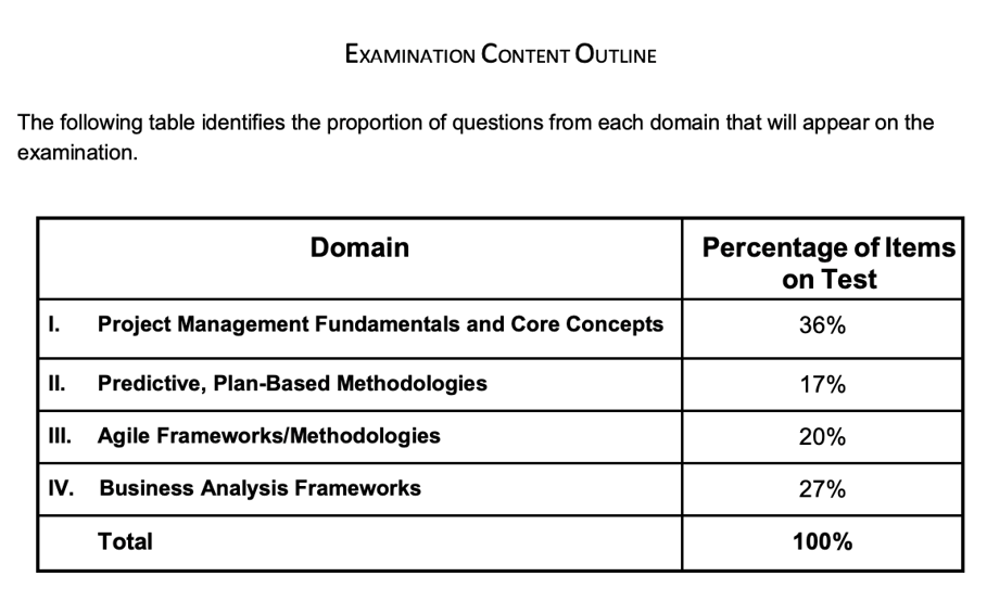The research conducted through the Job Task Analysis (JTA) validated that today’s project team members work in a variety of project environments and utilize different project approaches. Accordingly, the CAPM certification will be reflective of this and will incorporate approaches across the value-delivery spectrum. The examination will test the skills that entry- and associate-level individuals need in order to understand project management fundamentals as well as predictive, adaptive, and business analysis principles. These approaches will be found throughout the four domain areas listed above and are not isolated to any particular domain or task. The exact number of items for each question type and approach may vary by form. The scoring model is periodically reviewed by scoring experts to ensure valid assessment of knowledge and skills.